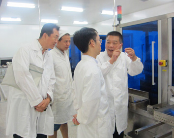 2014年8月6日,國家工信部財經(jīng)政策二處黃穎博士到湖北天藥調(diào)研指導(dǎo),視察湖北天藥小容量注射劑車間,襄陽市副市長范斌陪同。(圖為黃穎博士一行視察小容量注射劑車間現(xiàn)場)